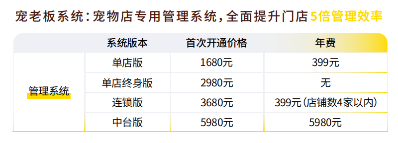无论是刚起步的新店,还是成熟的连锁品牌,宠老板2026全新价格体系,都能为门店提供高性价比、高适配性的数字化解决方案!